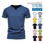 Tシャツ 半袖Tシャツ ヘンリーネック メンズ vネックtシャツ ヘンリーネックtシャツ カットソー 綿 半袖 無地 大きいサイズ ティーシャツ ティ