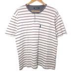 アクアスキュータム AQUASCUTUM Tシャツ カットソー 半袖 ボーダー ヘンリーネック M ホワイト系 ■YHS6 /X メンズ