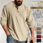 コーデュロイ tシャツ メンズ 長袖 ヘンリーネック カットソー クルーネック 丸首 無地 トップス シンプル カジュアル お