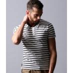 tシャツ フラージュ天竺ボーダーヘンリーネックカットソー メンズ