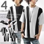 カットソー メンズ 半袖 七分袖 Tシャツ tシャツ ボーダー ストライプ 切り替え BIGシルエット ドロップショルダー カジュアル