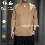 綿麻 Tシャツ メンズ Vネック 半袖 カットソー 無地 五分 七分袖 トップス カジュアル 涼しい リネン 麻 カジュアルシャツ 綿麻 夏