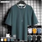 カットソー Tシャツ メンズ 無地 七分袖 ワッフル レイヤード Vネック ラウンド カジュアル シンプル キレイめ