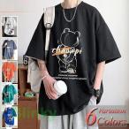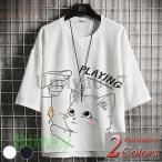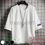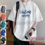 tシャツ パンチの効いたストリートアイテム。五分袖ルーズプリントTシャツ メンズ