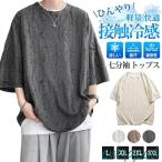 七分袖Tシャツ メンズ Tシャツ 七分袖 トップス 涼しい 接触冷感 ひんやり クルーネック 夏 カットソー 吸汗 通気性 軽量 快適
