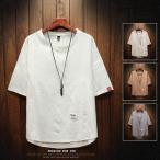 シンプル 七分丈Tシャツ メンズ バック長め 五分袖 カットソー 五分丈 七分袖Tシャツ ティーシャツ 大きいサイズ 夏 ビッグT