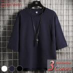 Tシャツ メンズ 七分袖 丸首 クルーネック 綿100% 40番手 カットソー 天竺 ニット ニット リブ高め 快適 着心地 ビジネスカジュアル おしゃれ