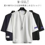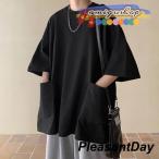 メンズ Tシャツ 半袖 オーバーサイズ ポケット付き シンプル 無地 ビッグシルエット 半袖カットソー ゆったり 七分袖 大きいサイズ おしゃれ カジュアル