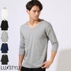 Tシャツ カットソー メンズ 無地 七分袖 Vネック クルーネック スリム ショート丈 コットン カジュアル