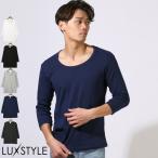 ロンT 7分袖 七分袖 Tシャツ メンズ Uネック 丸首 トップス カットソー インナー 無地 ストレッチ 大きいサイズ M L XL LL aa-3442