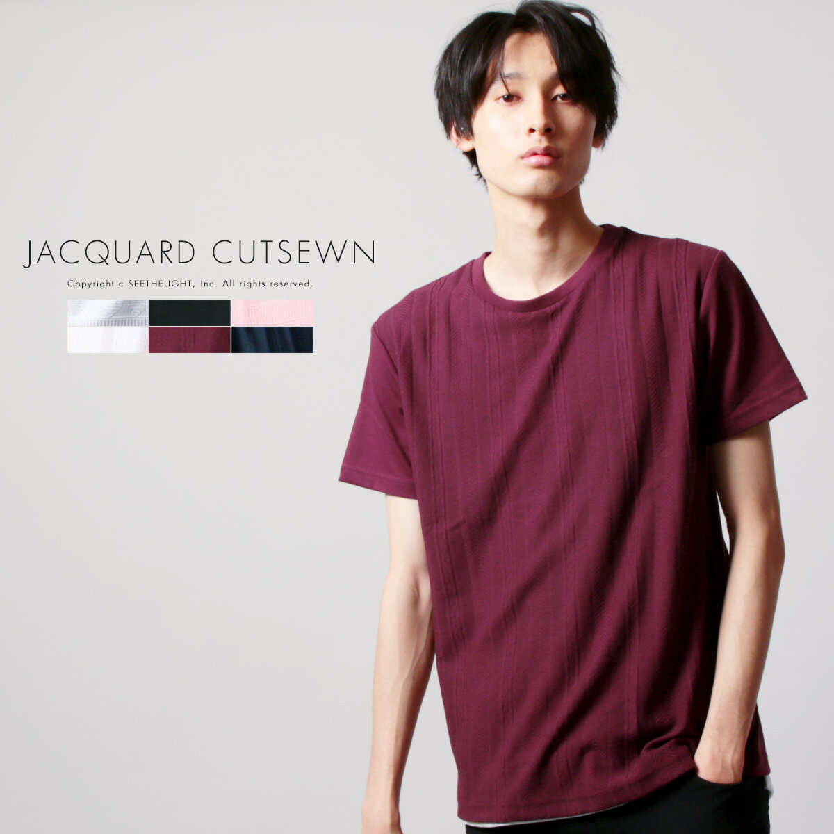 トップス メンズ 前身 切り替え ジャガード クルーネック 半袖 カットソー 夏 着回し トレンド メンズファッション
