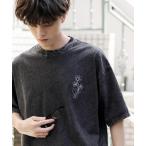 tシャツ オーバーサイズ ケミカルウォッシュワンポイントフラワープリント半袖Tシャツ メンズ レディース