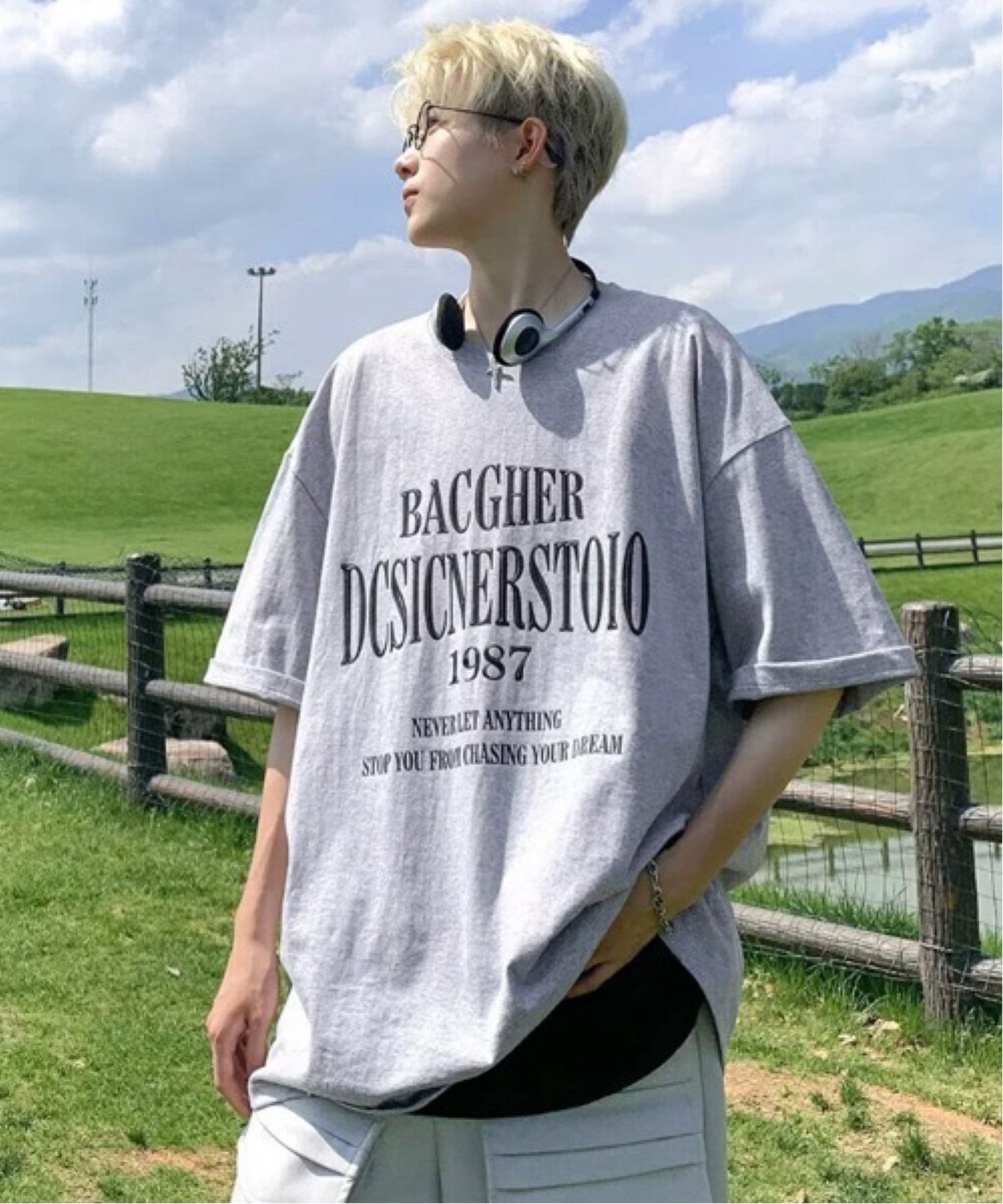 【SALE/70%OFF】HOOK 【HOOK】個性派抽象画プリント半袖ビッグTシャツ アイモハ トップス カットソー・Tシャツ ブラック グレー