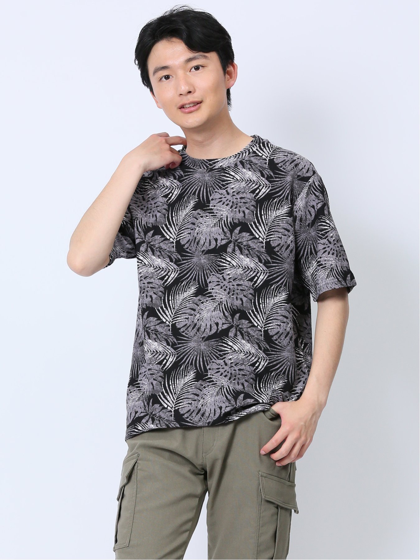 【SALE/61%OFF】m.f.editorial エンボスワッフル リーフ柄クルーネック半袖Tシャツ メンズ Tシャツ カットソー カジュアル インナー トップス ギフト プレゼント タカキュー トップス カットソー・Tシャツ ベージュ ブラック ブルー