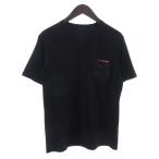 プラダ PRADA Vネック Tシャツ カットソー 半袖 ロゴ 胸ポケ 黒 ブラック M メンズ