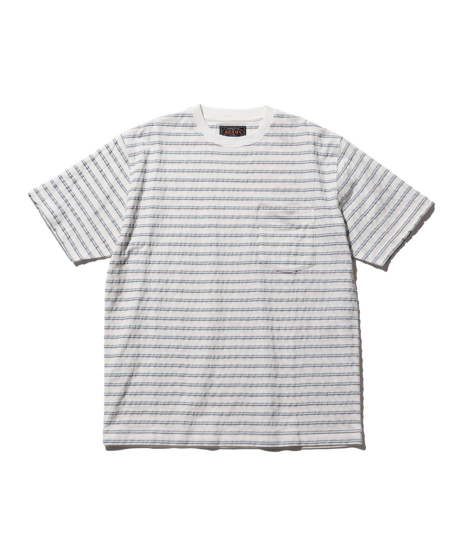 BEAMS PLUS|ジャカード ボーダー柄 半袖 ポケット Tシャツ BEAMS PLUS ビームス メン トップス カットソー・Tシャツ グレー ネイビー ホワイト【送料無料】[Rakuten Fashion]