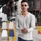ロンT メンズ ランダムテレコ Vネック ロングスリーブ 長袖 カットソー 無地 アッシュカラー ゆうパケット対応 キレイめ 大人カジュアル