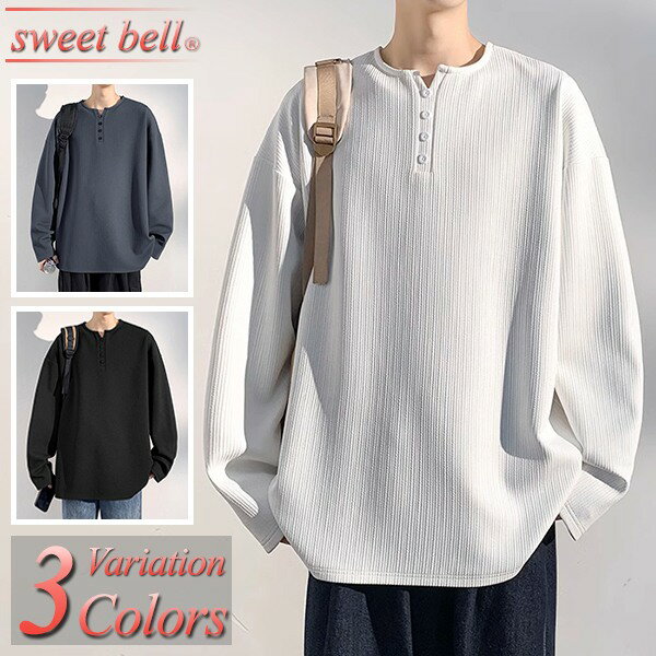 Tシャツ カットソー メンズ ヘビーウェイトワッフルヘンリーネック 長袖 3L以上お腹ゆったり オフホワイト/ネイビー/黒/杢グレー 3L〜10L ビッグ ラージ トップス ニッセン nissen