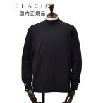 エラシオ ELACIO モックネックカットソー メンズ 長袖Tシャツ コットンスムースジャージー ブラック 黒 袖口釦仕様 無地デザイン 国内正規品