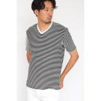 tシャツ HIGH STREET∴スパイラルボーダーランダムステッチ半袖Vネックカットソー メンズ
