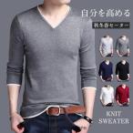 ニットセーター メンズ カットソーニット 無地 クルーネック インナー 重ね着 Vネック シンプル ビジネス セーター 長袖 男性 秋冬 トップス