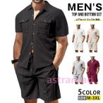 セットアップ 上下セット ワッフル 開襟 メンズ 夏 無地 涼しい カットソー Vネック