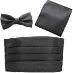 【3点セット】タキシード用 メンズ 紳士 礼服用 カマーバンド サテン製 光沢 ブラック シルクタッチ 蝶ネクタイ ポケットチーフ 結婚式 成人式 フォーマル