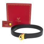 美品 Cartier カルティエ Cロゴバックル ギボシタイプ レザーベルト 110 43 ブラック×ゴールドカラー メンズ 古着 中古