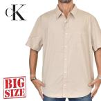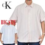 大きいサイズ メンズ CK カルバンクライン Calvin Klein カジュアル 半袖 オープンシャツ ワンポイント ストライプ柄 CLASSIC FIT XXL