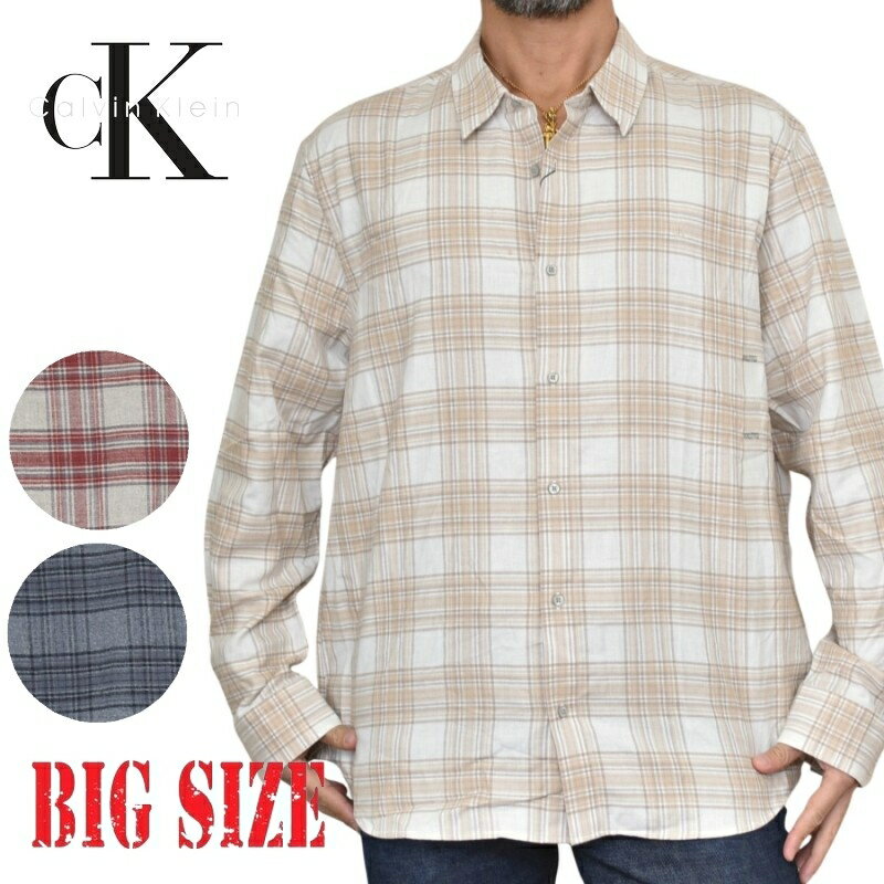 大きいサイズ メンズ CK Calvin Klein カルバンクライン チェック柄 長袖シャツ ワンポイント刺繍 ネルシャツ XL XXL