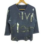 カルバンクラインジーンズ 長袖Tシャツ トップス Vネック ロゴプリント メンズ Lサイズ ネイビー Calvin klein Jeans