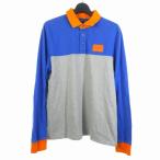 カルバンクラインジーンズ Calvin Klein Jeans ポロシャツ 長袖 ワンポイント M ブルー イエロー グレー メンズ