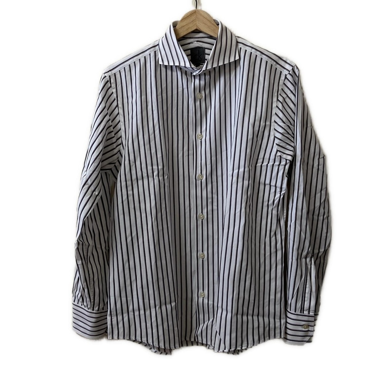 カルバンクライン ブランドシャツ サイズ表記 S ブルー Calvin Klein ストライプ CK 長袖 青 白 ホワイト stripe 古着【中古】wv2005-1119
