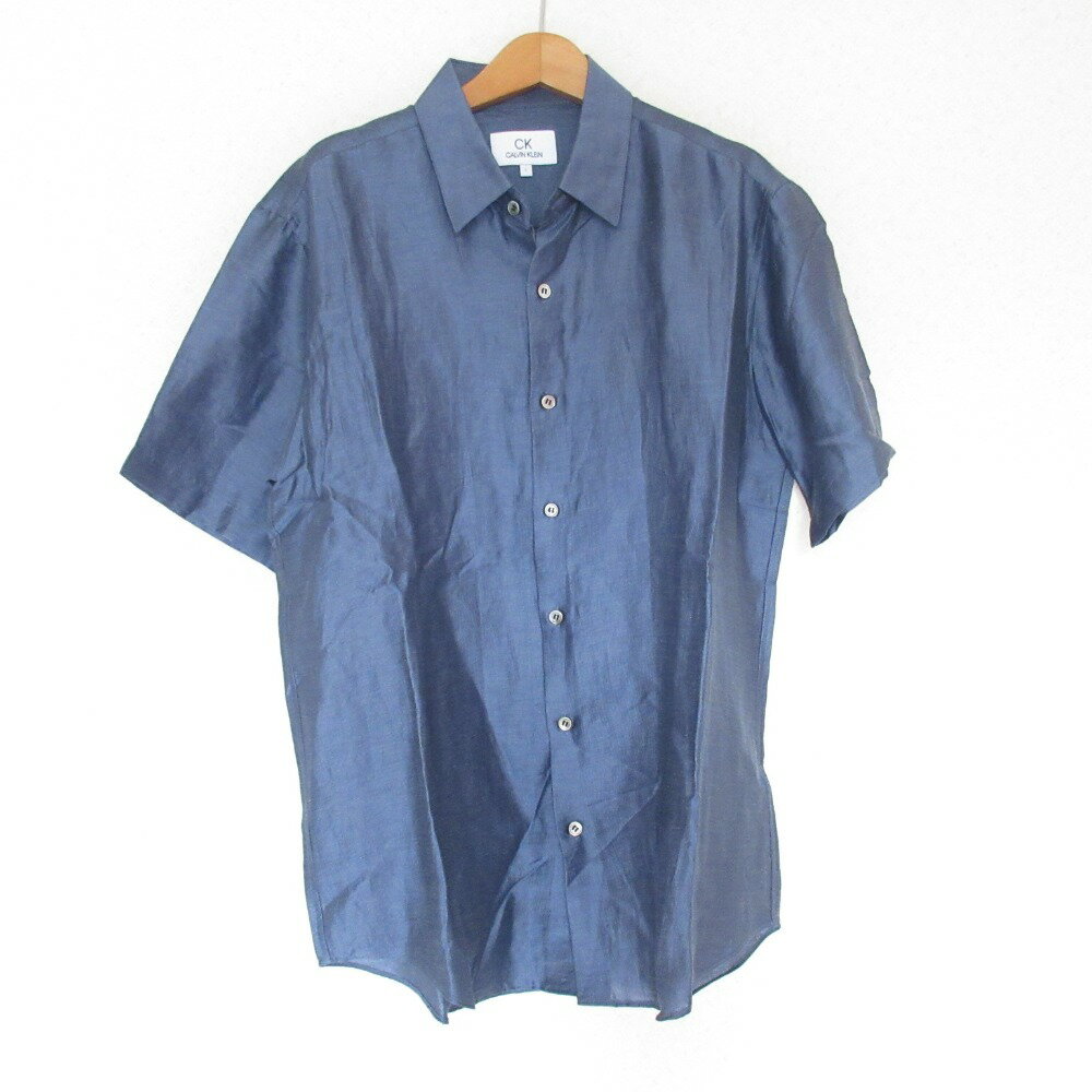 【中古】美品 Calvin Klein CK カルバンクライン リネンブレンド 半袖シャツ L ブルー メンズ Luxs ブランド古着のリュクス