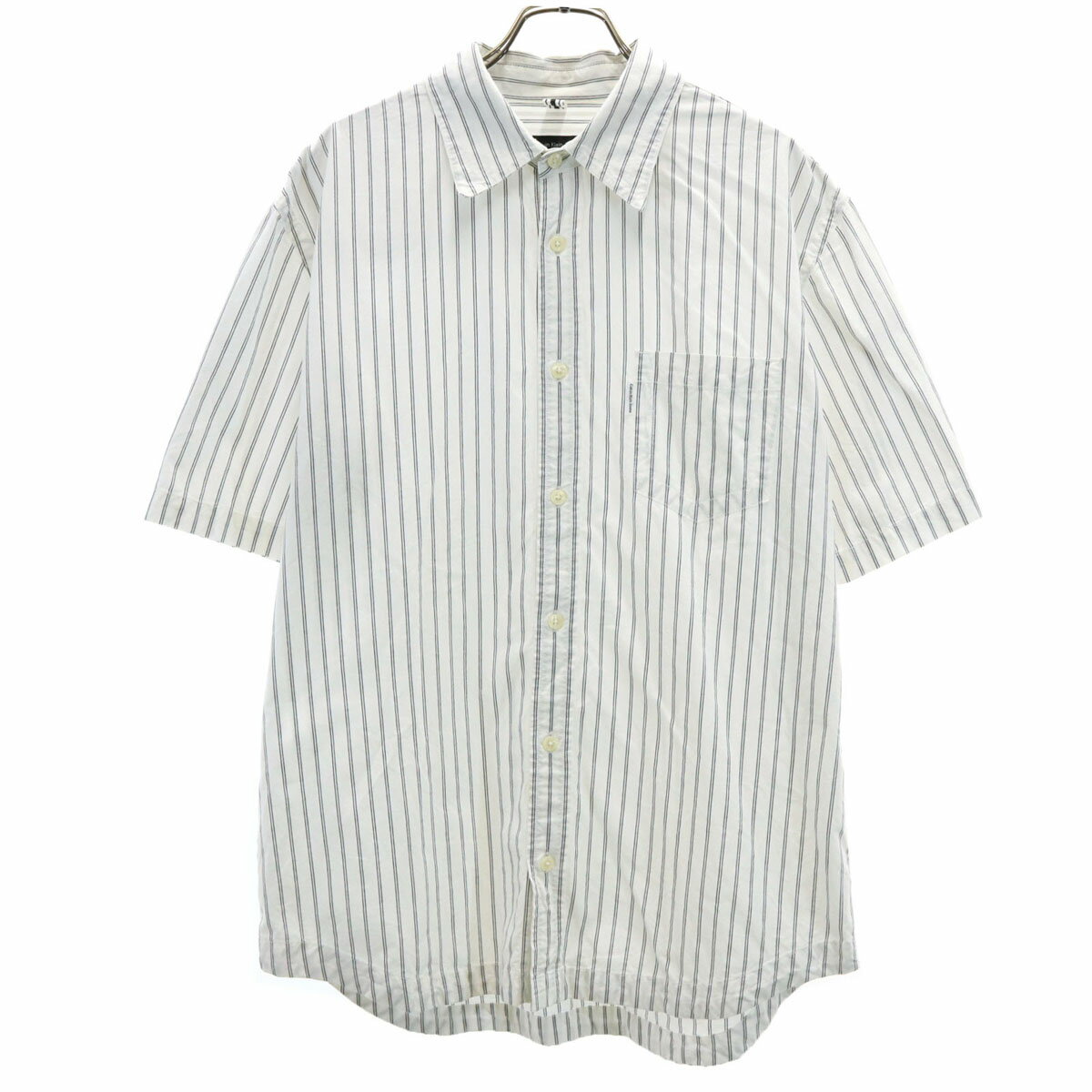 古着 Calvin klein Jeans カルバンクラインジーンズ ストライプ柄 半袖 コットンシャツ L ホワイト メンズ 【中古】