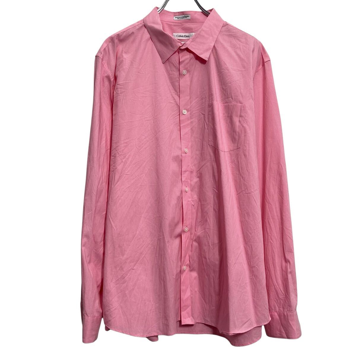 【中古】【古着】 Calvin Klein 長袖 無地シャツ カルバンクライン L~ ピンク フォーマル スリムフィット 古着卸 アメリカ仕入 a612-7469