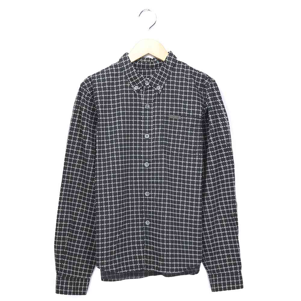 カルバンクライン ブランドシャツ サイズ表記 M ブラック 長袖 Calvin Klein Jeans チェック ボタンダウン BD ロゴ CK Black 黒 古着【中古】wv2101-1875