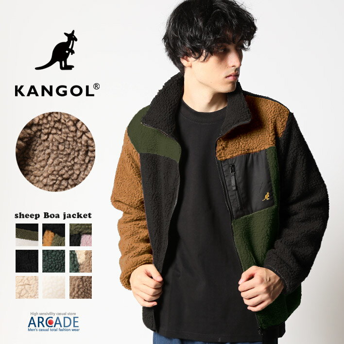 KANGOL / カンゴール ボア ジャケット メンズ ブルゾン アウター シープボア フリース メンズファッション 裏地付き ボア ジップ もこもこ 秋 冬 服 冬服 カジュアル
