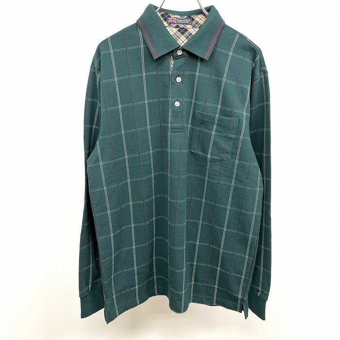 【楽天スーパーSALE限定!! \★35%OFF★/対象商品|12月4日(木)20時00分〜12月11日(木)01時59分まで】【中古】KANGOL カンゴール L メンズ ポロシャツ 鹿の子 チェック 内側が微起毛 長袖 ポリ×綿 グリーン×レッド×ネイビー×ホワイト×ブラウン 緑