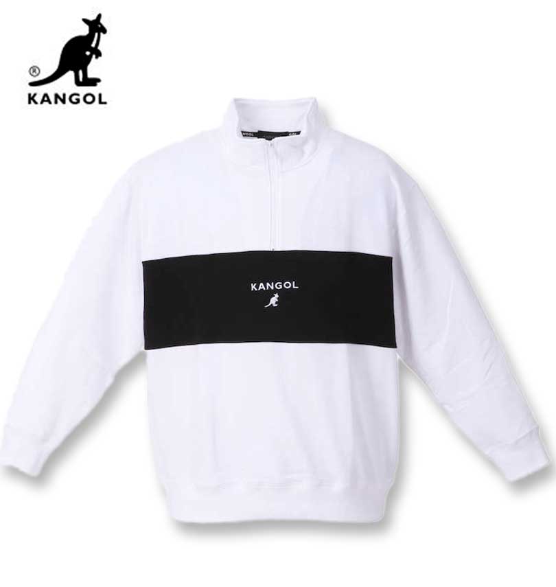 大きいサイズ メンズ KANGOL 裏毛 ハーフジップトレーナー ホワイト 3L 4L 5L 6L 8L 送料無料