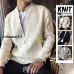 カーディガン メンズ ニットジャケット ブルゾン セーター クールネック アウター 長袖 無地 春秋冬 前開き ユニセックス 厚手 ス