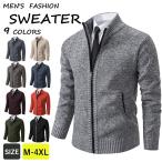 カーディガン メンズ ニットジャケット ジップアップ ニット セーター 無地 長袖 ファスナー トップス 秋冬