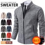 カーディガン メンズ ジップアップ ニットジャケット 裏起毛 秋冬 ニットセーター 長袖 トップス 前開き カーディガン ニットカーディガン スタンドカラー 防寒 厚手 アウター カジュアル