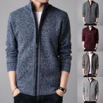 カーディガン メンズ ニットジャケット ジップアップ ニット裏起毛 厚手 セーター 無地 長袖 スタンドカラー ファスナー ス 秋冬