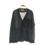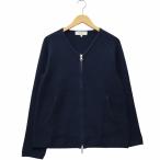 ダブルスタンダードクロージングヒム D/him. 長袖 カーディガン ニット 48 紺系 ネイビー ライン ジップアップ ポケット 毛 ウール メンズ