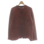 カスタムカルチャー CUSTOM CULTURE ニット ブルゾン ウール F 赤 レッド ダイヤ柄 ノーカラー 長袖 ジップアップ カーディガン /PP