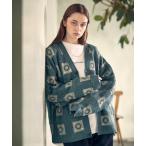 「unrelaxing」 ニットカーディガン FREE ブラック×ホワイト メンズ