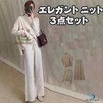 セットアップ 上下セット レディース 3点セット パンツセット ニット 秋 春 冬 ベスト