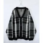 カーディガン オーバーサイズ 総柄Vネックニットカーディガン アーガイル柄/チェック柄 メンズ レディース