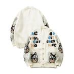 【SALE/50%OFF】HOOK HOOK -original-/激カワ サガラ刺繍猫柄Vネックカーディガン アイモハ トップス カーディガン ブラック ホワイト